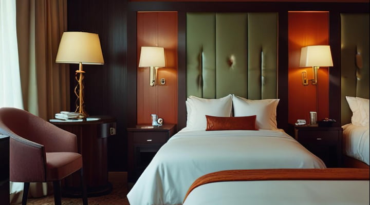W każdym pokoju znajdziesz wygodne łóżko (king size lub twin), klimę, ciszę i możliwość całkowitego zaciemnienia. To przestrzeń do odpoczynku po długim wieczorze.